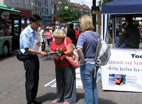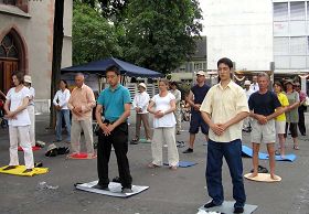 当天,还有部份德国法轮功学员专程前来声援。