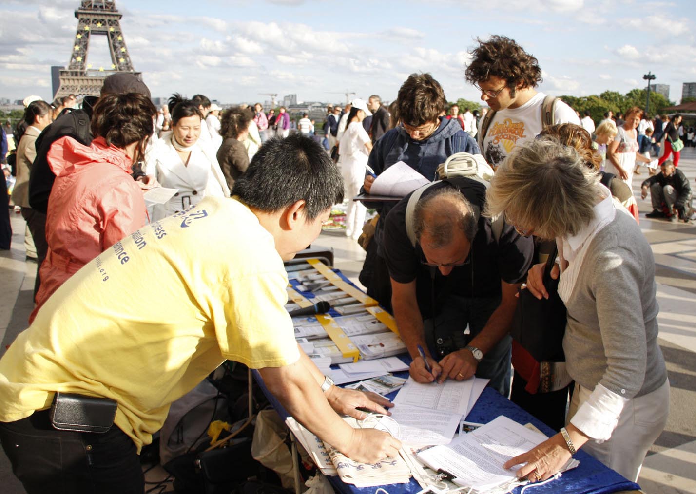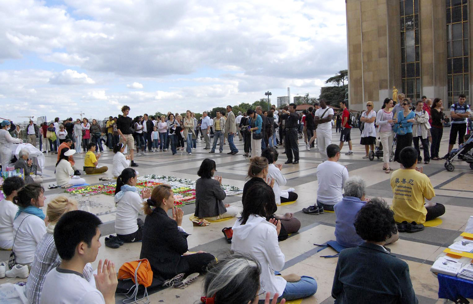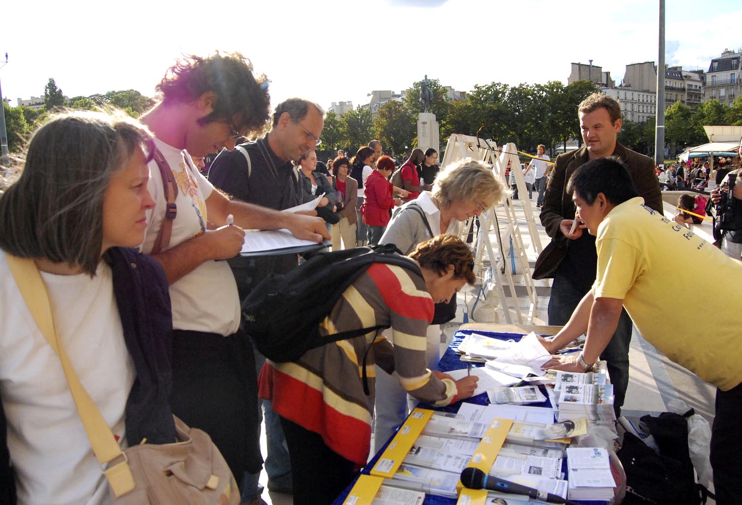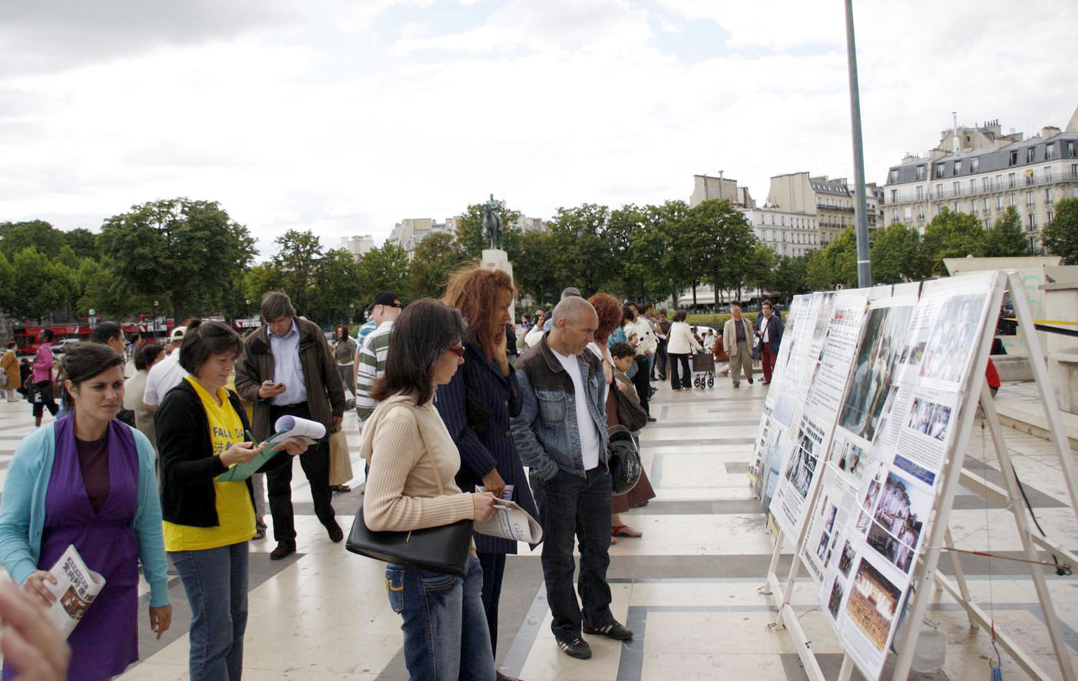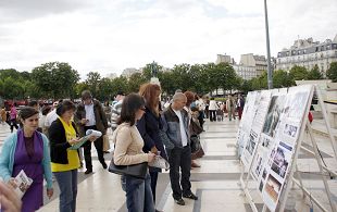 法国法轮功学员在巴黎人权广场上的反迫害活动已经坚持了九年,九年中大法弟子秉承和平理性,让全世界来到这里的社会各界人士及民众目睹了法轮大法弟子的风范。