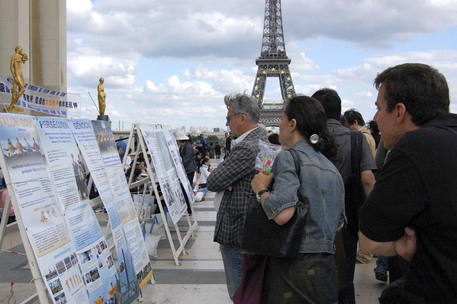 巴黎人权广场与埃菲尔铁塔遥相对望,是法国法轮功学员经常举行活动的地方,《世界人权宣言》就是在广场旁的夏约宫(Palais de Chaillot)中签订的,人权广场之名也由此得来。九年来,每到周末或重要的日子,法轮功学员们都会到这里炼功、讲真相,这里有来自世界各地的游客。很多民众从这里了解到法轮功的真相,还有些人从这里走进了法轮功的修炼 。