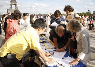 ![]() 人们纷纷签名谴责中共迫害法轮功 |