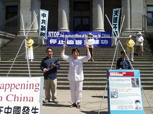 ![]() 福冈中领馆前,抗议中共对法轮功的迫害。 |