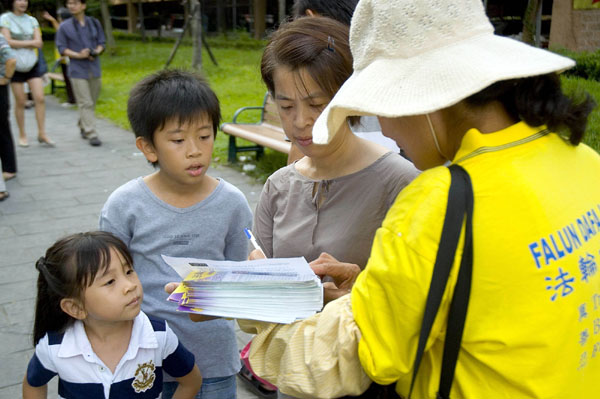 ![]() 民众通过签名的方式支持法轮功学员反迫害 |