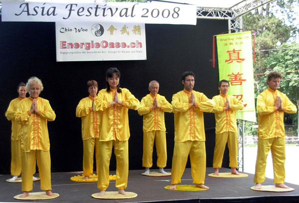 ![]() 法轮功学员再次在亚洲节的舞台上演示功法 |
