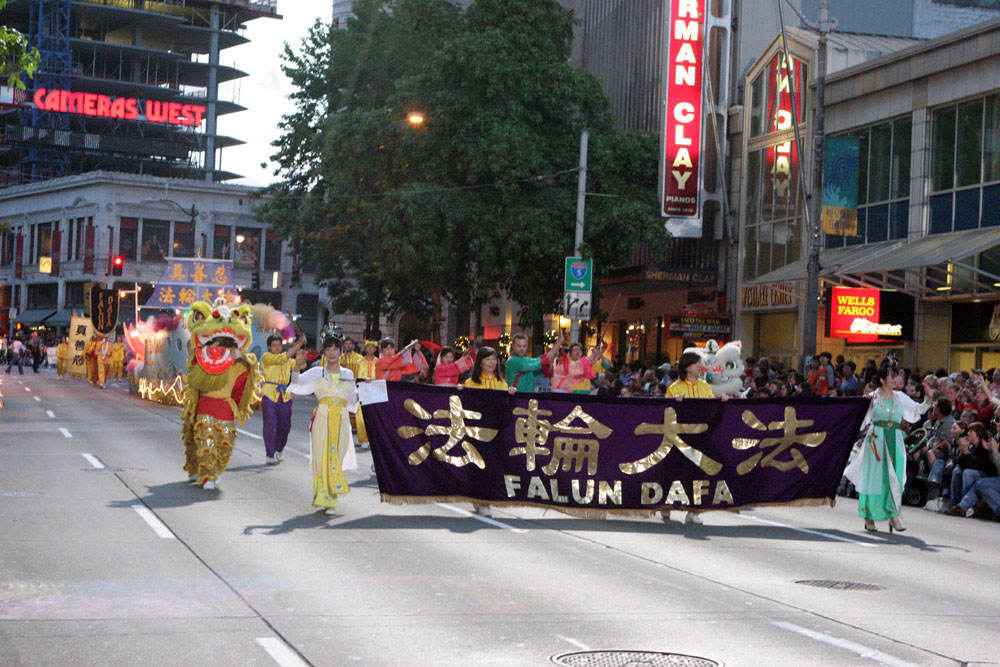 隔天,西雅图第一大报纸《西雅图时报》(Seattle Times)报道了海洋节“炬光”大游行,其中报道了法轮功团体。西雅图第二大报纸《西雅图PI》(Seattle Post Intelligence)网站版登载了法轮功团体在游行中的照片。