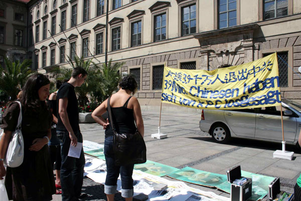 ![]() 慕尼黑圣米歇尔广场上揭露中共暴行、声援退党的活动 |