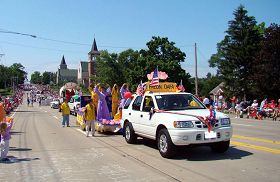 ![]() 法轮功学员参加密苏里州奥法隆市的美国独立日庆祝游行 |