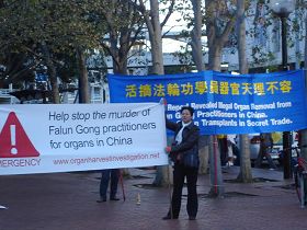 二零零八年八月十日至十四日,国际器官移植大会在澳洲悉尼举办期间,每天有许多法轮功学员聚集在达令港附近的悉尼会议中心前,呼吁国际社会特别是国际器官移植界,关注持续在中国发生着的中共活摘法轮功学员器官罪行。