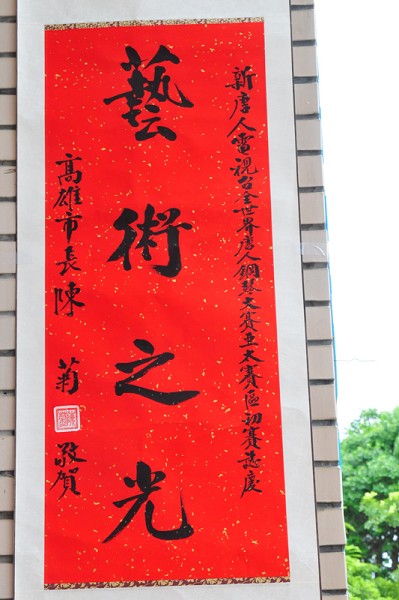 ![]() 高雄市长陈菊,赞大赛是艺术之光。 | ![]() 立委王进士赞赏新唐人电视台世界华人钢琴大赛造就人才。 | ![]() 台南市长许添财、立委赖清德祝贺大赛成功。 | ![]() 台南县长苏焕智、副县长颜纯左祝贺大赛成功。 |