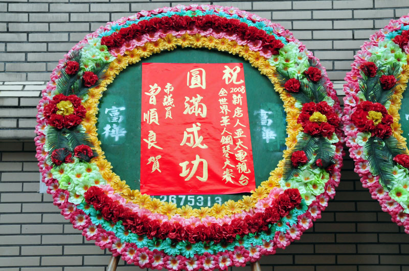 赛事更受到多位政要的祝贺,行政院蒙藏委员会委员长高思博、行政院青辅会主委王昱婷、台南市长许添财、高雄市长陈菊、台南县长苏焕智、副县长颜纯左、立法委员赖清德、王进士、市议员蔡旺诠、陈宗彦、王定宇、曾顺良、萧博仁、中国广播电台台南台台长傅素绢等,都特别透过贺联、花圈、花篮祝贺“全世界华人钢琴大赛”亚太初赛圆满成功。