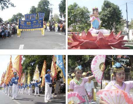 【明慧网二零零八年八月二十七日】二零零八年八月十八日,法轮大法学员集聚于印尼巴里岛新亚拉佳市的县长办公厅前,参加印尼国庆日和新亚拉佳市建市大游行。