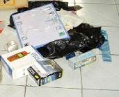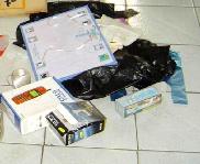 ![]() 桌上的电脑和打印机被抄走 | ![]() 地上一些被翻乱的东西 |