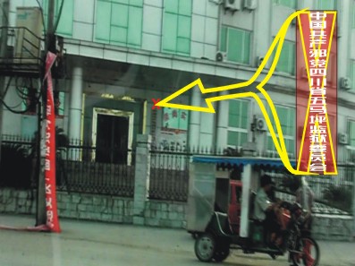 在四川省乐山市犍为县清溪镇,从镇上通往五马坪监狱的公路两边,尽管老百姓住的是破旧房屋,但这里却矗立着一栋豪华高楼,一个罪恶黑窝——中国共产邪党四川省五马坪监狱委员会盘踞在此,所有被非法关押在五马坪监狱的大法弟子,他们的亲人要来探望自己,都必须持有在此出具的许可证明。(见下图)