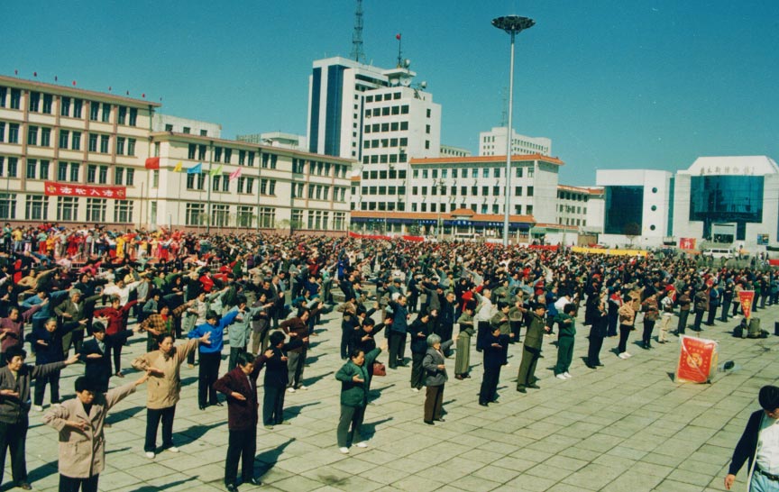 ![]() 佳木斯市政广场集体洪法炼功(1998年拍摄) |