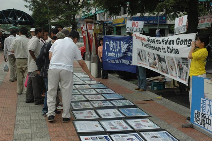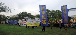 当天声援中国人退出中共及其相关组织的活动首先于中午一时,在沙亚南居住最多不同民族的地区——太子园举行。此地的居民主要为华人、马来人及印度人,也有来自印尼、印度、孟加拉、巴基斯坦以及越南等地的居民。退党服务中心义工们向当地民众揭露中共还在迫害中国百姓,尤其是活体摘取法轮功学员器官的罪行;并派发《九评共产党》光碟和书籍;让他们进一步了解中共邪党的真实面目。