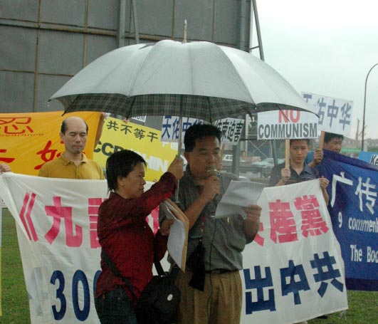 ![]() 声援退党游行在雨中进行。 |