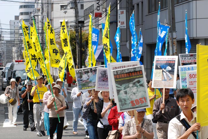 ![]() 游行队伍行进在大阪繁华区难波 |
