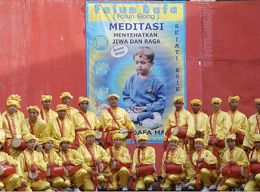 八月二十四日,法轮大法学员组成的腰鼓队在展览大门口演出,让被誉为巴里岛艺术之都的基安亚的民众有机会目睹来自中国的传统艺术。人们被学员的艺术表演所震撼,更对法轮大法感到好奇。