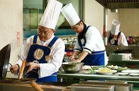 不担心被自己的学生超越。何金城认为,过去老厨师教徒弟,不是留一步不教,是因为不擅言词而交代不清,现在教学则是学与术的结合,从营养学概念开始,让学生清楚了解食材、佐料选用的不同。他常告诉学生,这是门辛苦、高危险的行业,非得要有兴趣才能坚持下去。对他来说,传承要谨记尊师重道,也是一种使命。