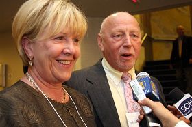 九月二十五日晚,卡里登市长玛罗琳•莫里森与先生兴致勃勃的观看了二零零八年神韵多伦多中秋晚会的第二场演出。