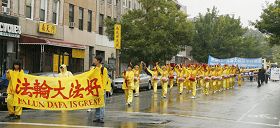 法拉盛居民刘国华先生,原为中国东北大学法学教师,他说自己参加全程游行,虽然因下雨全身湿透,但心里非常非常高兴,他表示:“法轮功的朋友做了一件天大的功德,由于他们的讲真相,中国大陆有四千三百万民众退了党、团、队。我们可以肯定的告诉大家,凡是退了党、团、队的,都是得救的人,他们将开始一个新的生命,他们不会随着中共的恶党一起灭亡。”