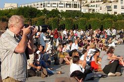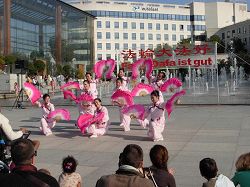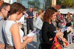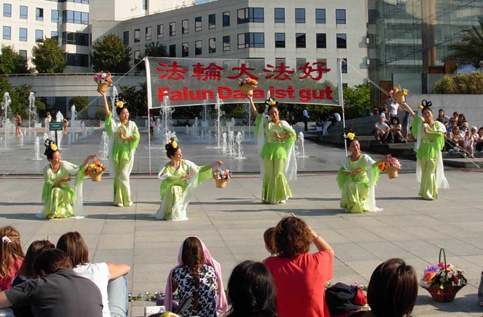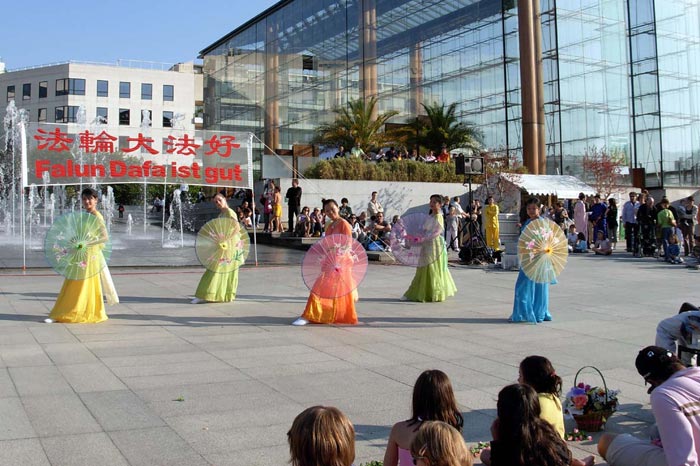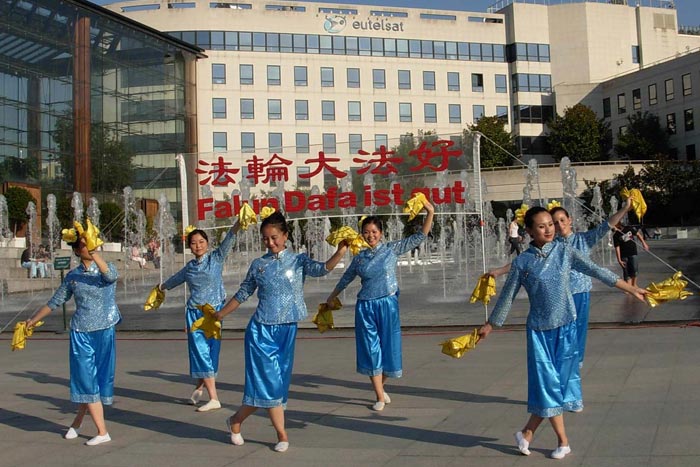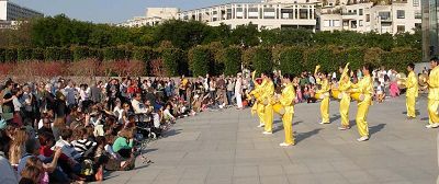 安德烈·雪铁龙公园坐落在欧卫公司的旁边,所以节目主持人向观众介绍了有关欧卫关闭新唐人电视台信号的事项,观众们在表演结束后向记者表示他们对欧卫的做法感到很遗憾,也恳切希望欧卫能早日恢复新唐人电视台向中国大陆的播出。
