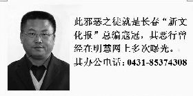 此邪恶之徒就是长春市《新文化报》主编寇冠,屡次诬蔑法轮功,其恶行在明慧网上多次曝光。电话:0431-85374308。