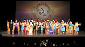 ![]() 神韵纽约艺术团演员谢幕,观众起立鼓掌致意,现场气氛非常热烈。 |