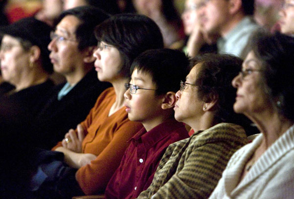 ![]() 神韵国际艺术团在硅谷高科技重镇库柏帝诺市第三场演出的观众 |