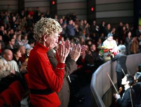 ![]() 2009年1月13日晚间,拥有一家美容中心兼总裁的McBride女士,和先生一同观赏美国神韵纽约艺术团在多伦多会展中心剧院的演出。 |