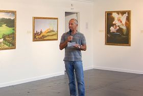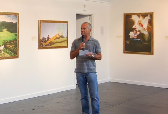 Depot 艺术画廊的经理Lawton 讲一口流利中文,他在开幕式上以中文致辞,回忆了两年前真善忍美展来到新西兰时,就是在该画廊首次展出的,他对画廊能再次举办真善忍国际美展感到十分荣幸。