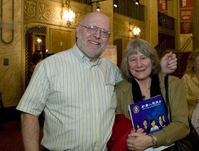 ![]() 小提琴家克里斯·巴恩斯(Chris Barnes)和太太对神韵晚会赞叹不已。 |