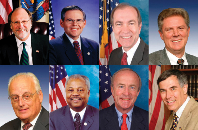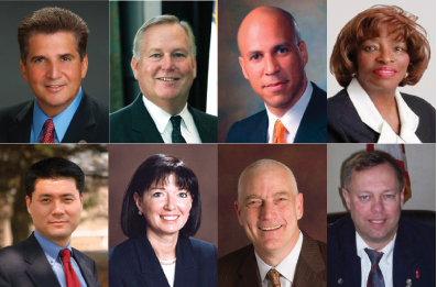 ![]() (从左上角起顺时针排列)州长科赞、国会参议员梅南得斯、国会众议员斯考特•加瑞特、国会众议员弗兰克•帕隆、国会众议员比尔•帕斯奎尔、国会众议员唐纳德•佩恩、国会众议员罗得尼•弗林海森以及国会众议员罗斯•霍特。 |
