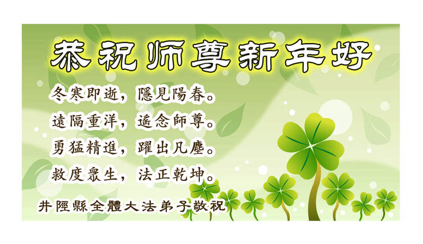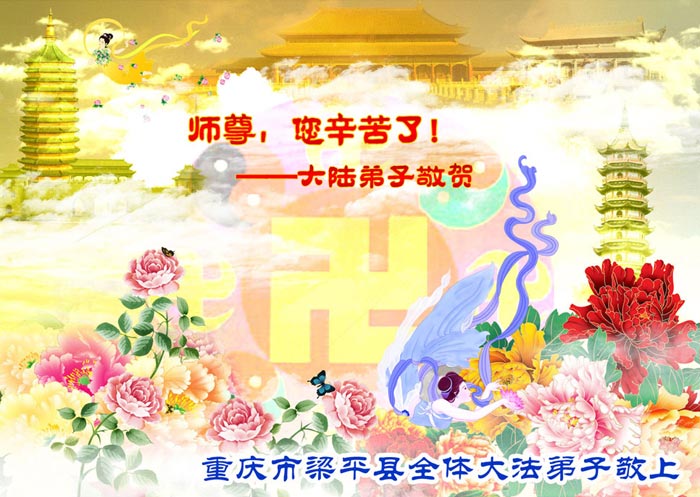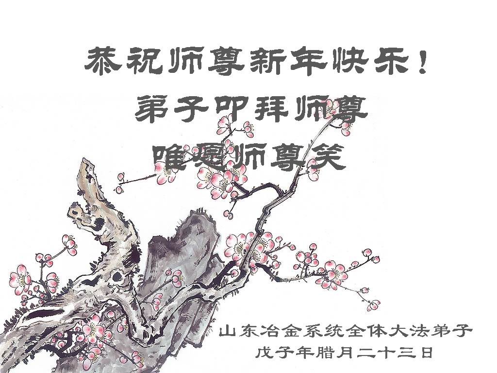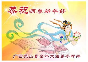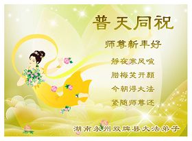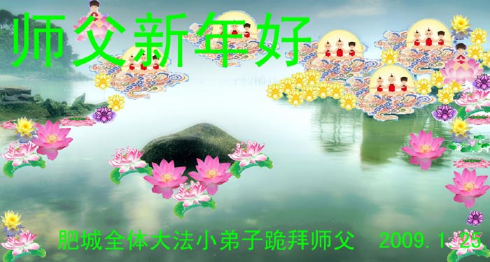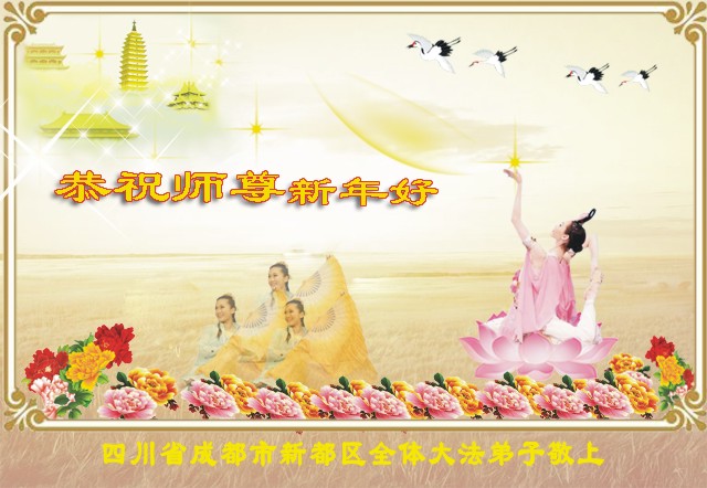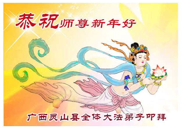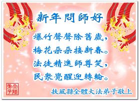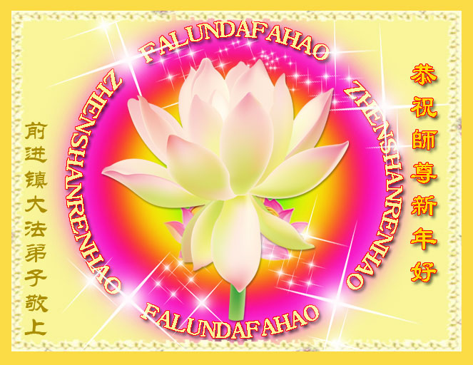 随着岁月的流失,又一个新年即将到来。在这辞旧迎新的日子里,我们全乡镇的大法弟子向伟大的恩师拜年!祝师尊新年快乐!弟子们思念我们伟大的师尊。在这瞬间即逝的宝贵时间里,我们要紧跟师父的正法進程,去掉各种执著,精進实修,学好法,做好三件事,比学比修,整体升华,整体提高。圆容师尊所要的,不辜负恩师的期盼。完成我们肩负的重任——救度众生,圆满随师把家还。谢谢恩师。
