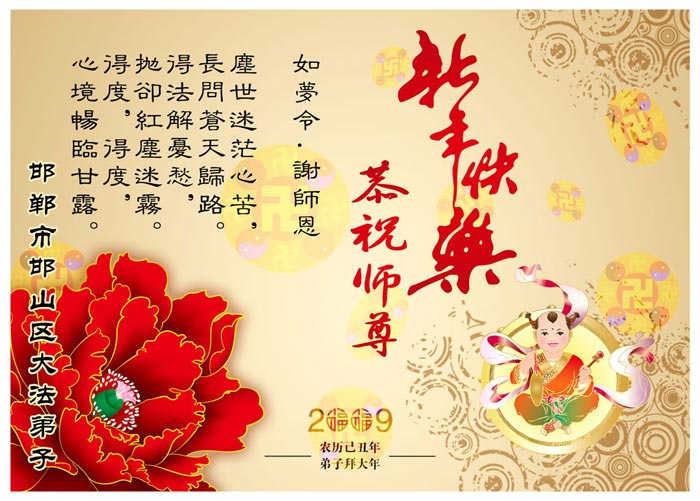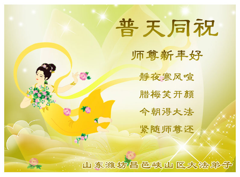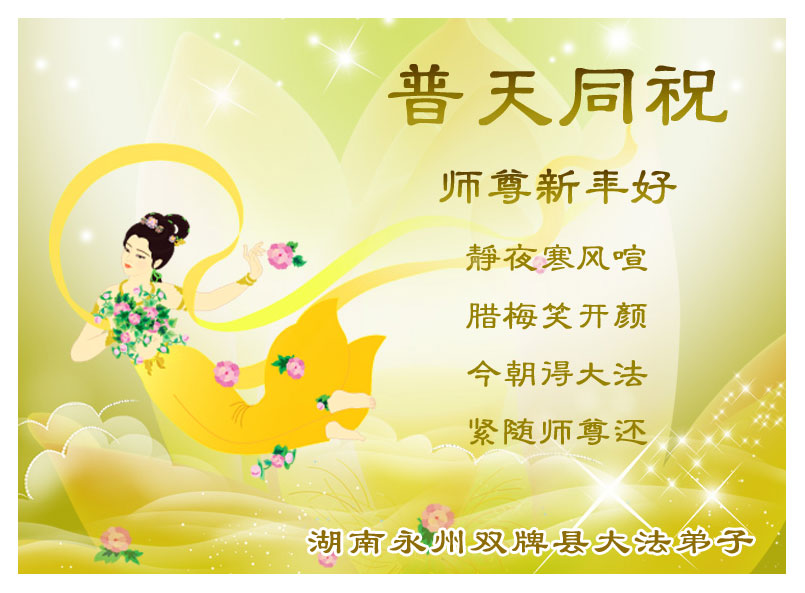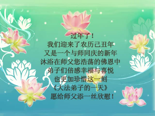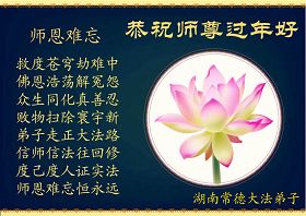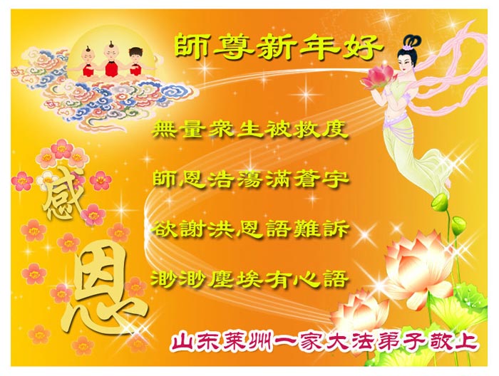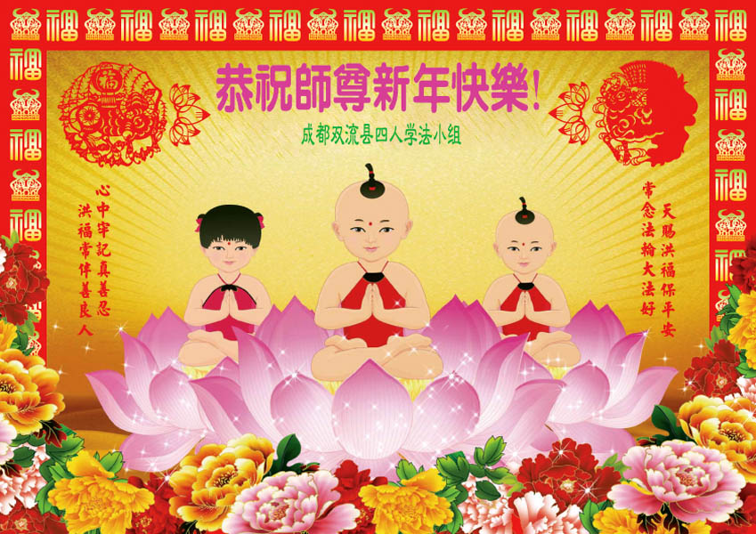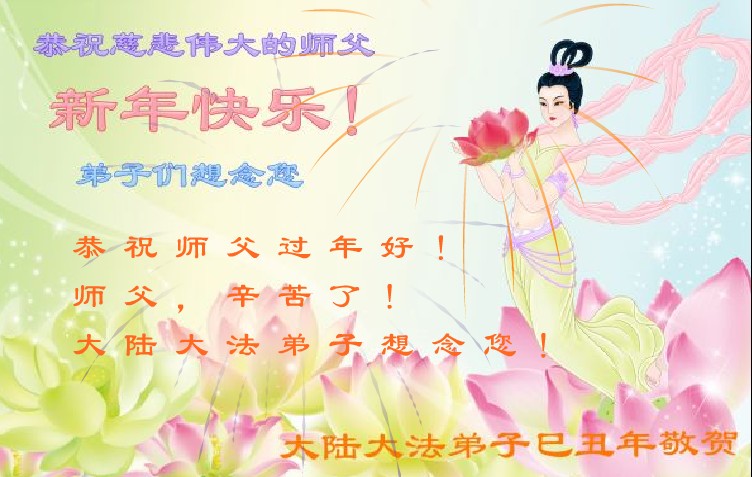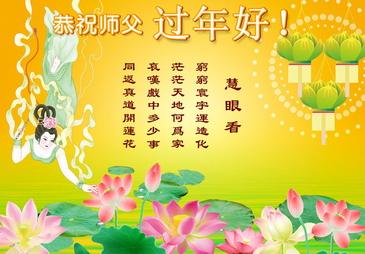 中国农历新年即将到来,大法弟子给慈悲伟大的师尊拜年,并祝师尊新年快乐。同时感谢师尊的慈悲苦度,向师尊合十叩拜。我们正在按照师尊的教诲,精進实修,认真做好三件事。