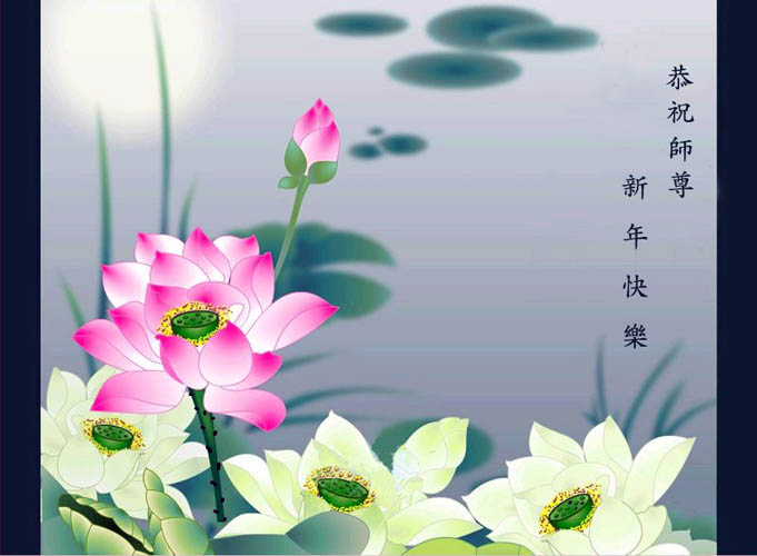 伟大的师尊新年好。我们在这里代表全家给师尊拜年,师尊新年好!弟子们一定更加精進的做好三件事,谢谢伟大的师尊!