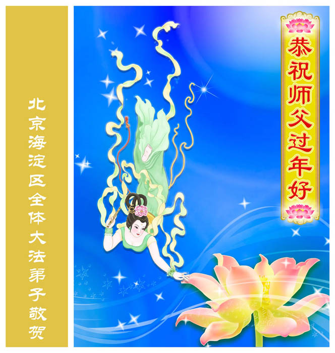 慈悲伟大的师父啊:北京西三旗、马家堡、大兴区、空军大院大法弟子给您拜年啦!
