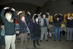 ![]() 法轮功学员做功法演示 |
