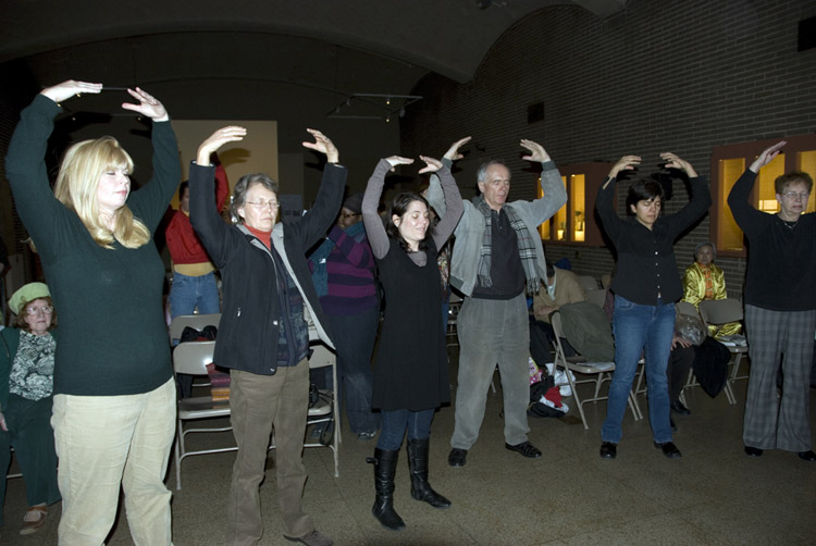 ![]() 观众学炼法轮功 |