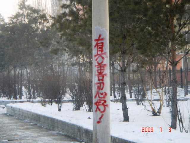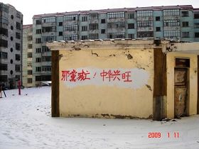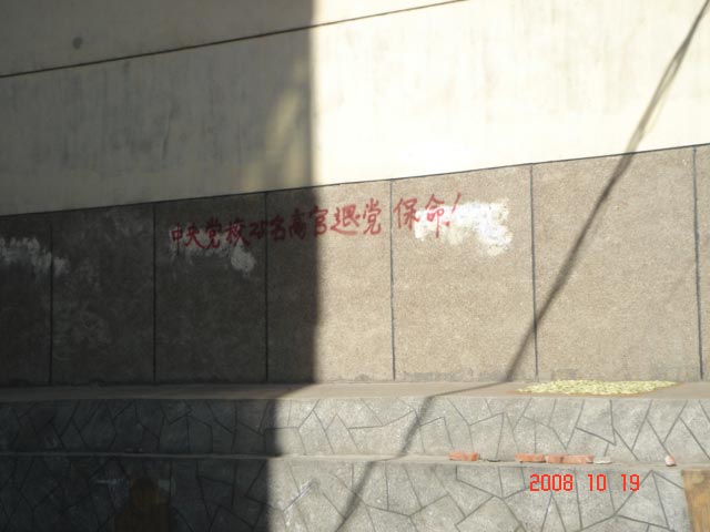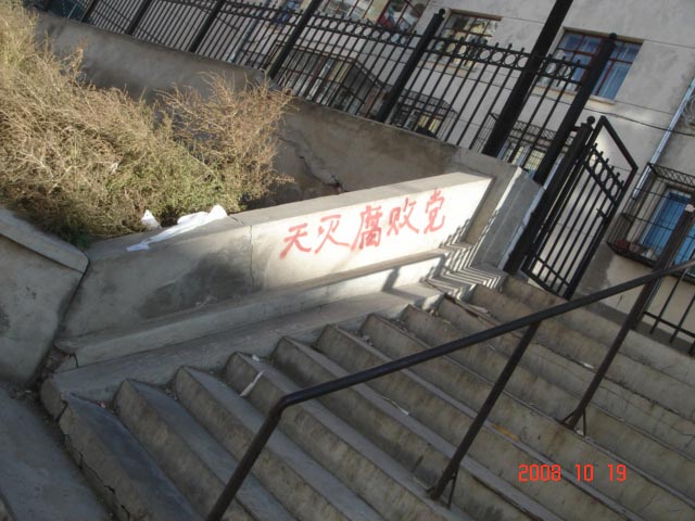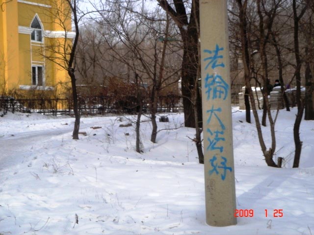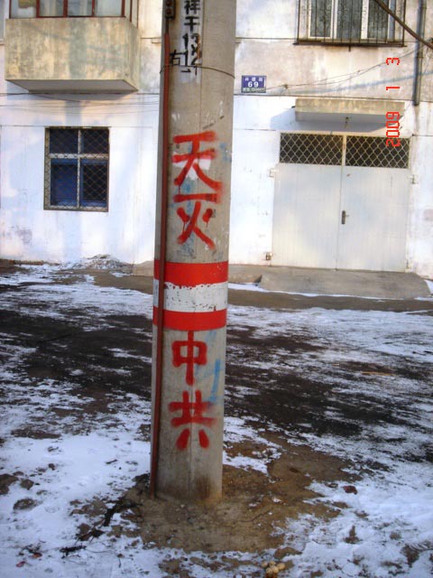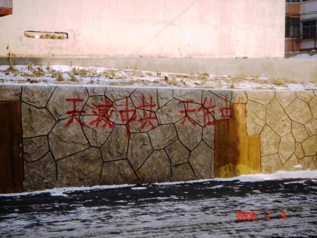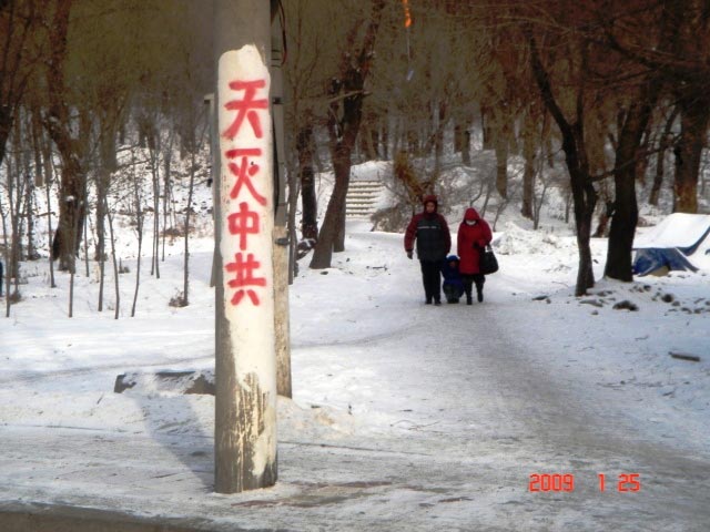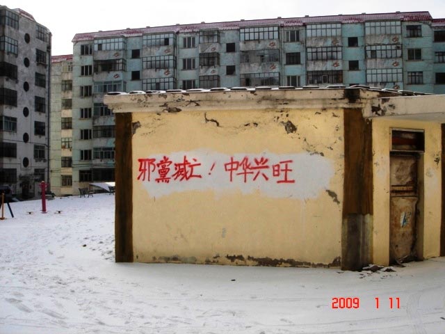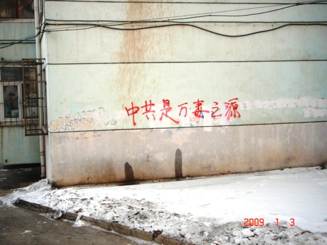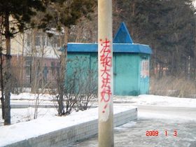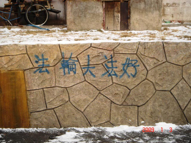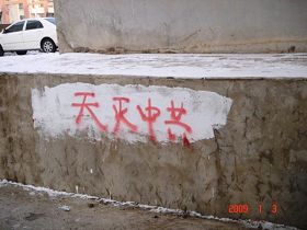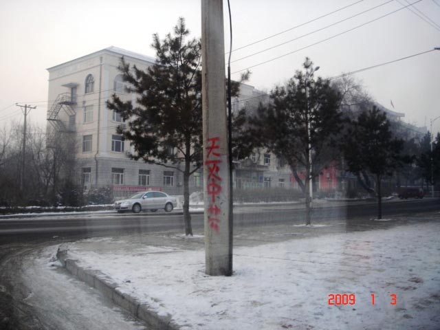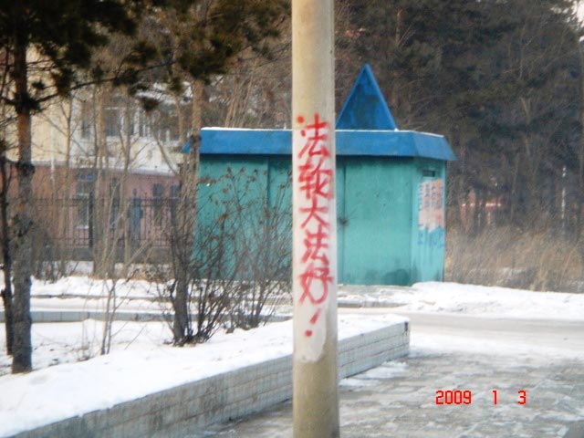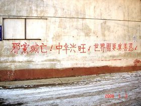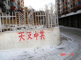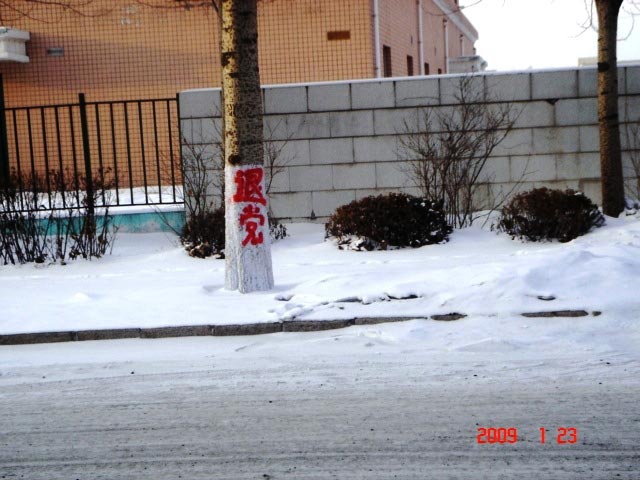 “天灭中共”、“退党保命”、“声援四千八百万人退党”、“中央党校25名高官集体退党”、“法轮大法好”、“信仰无罪,停止迫害”、“平反法轮功,法办江泽民”、“法轮功被迫害千古奇冤”、“欢迎法轮功,法办江泽民”、“大法救人,恶党害人”、“天灭腐败党”、“中共是万毒之源”等;