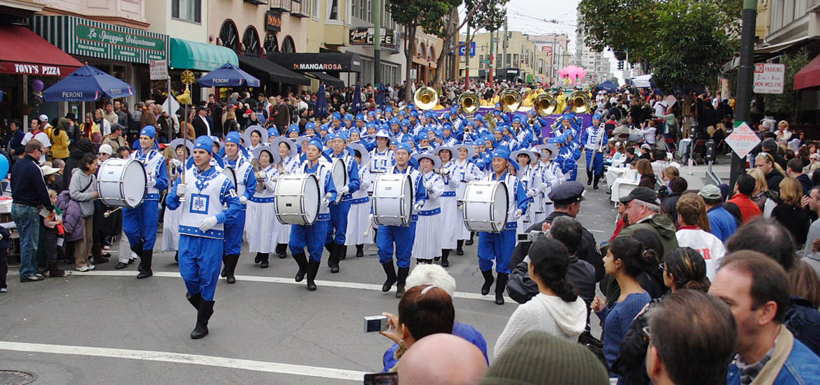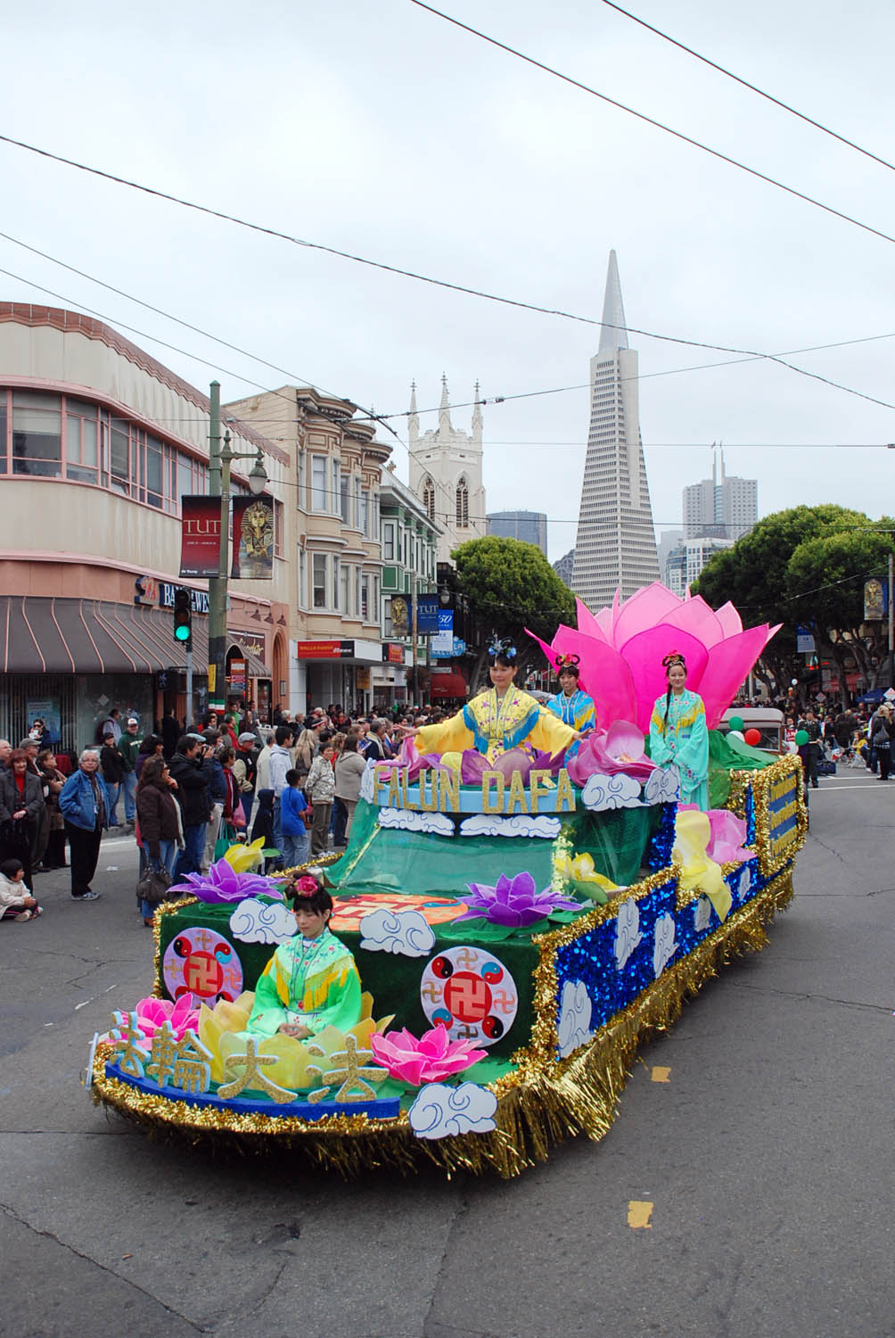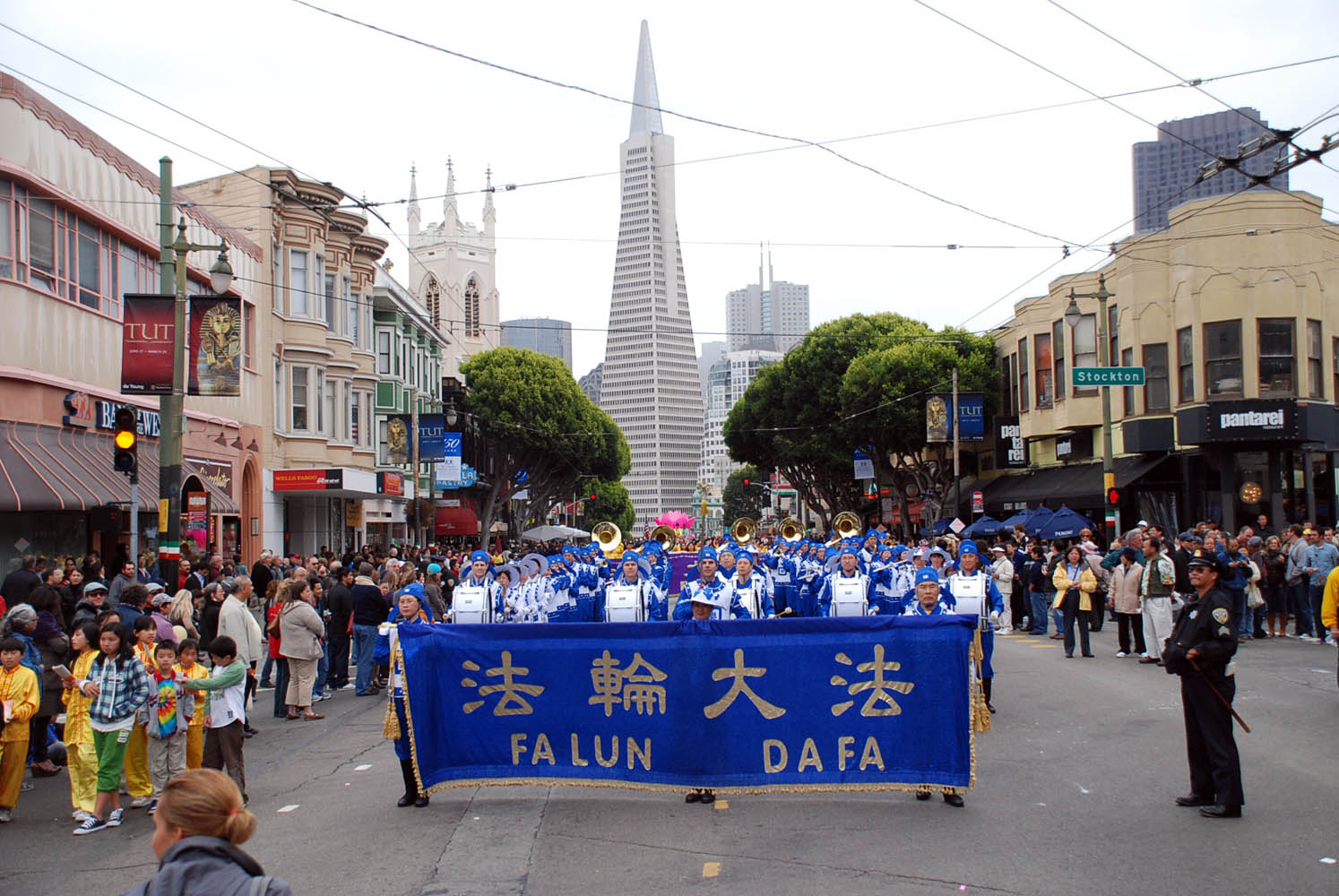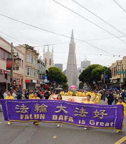 ![]() 法轮功学员的队伍经过旧金山主要街道 |