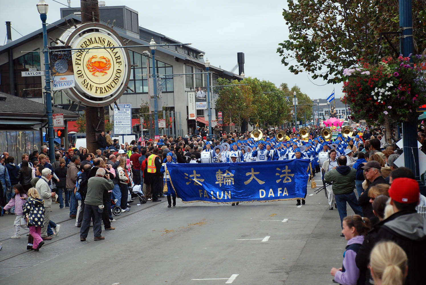 ![]() 法轮功学员的队伍经过旧金山鱼人码头 |