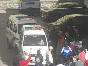 法庭外,大约40位左右被拒门外的亲友,他(她)们静静的等待着能见胡其利一面,当中白发苍苍的老者有近10位。胡其利的婆母满头白发,身着一件红色外衣,老人几次想进门去看一眼自己的儿媳,被警察粗暴的拦截、推搡。当胡其利被警察带出来时,亲友们举起手来向她致意,她也微笑着仰起戴着手铐的双手向亲友挥动着……