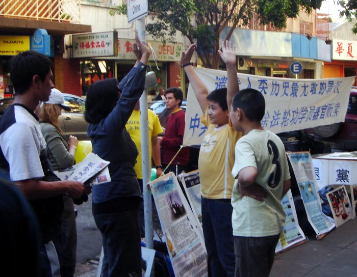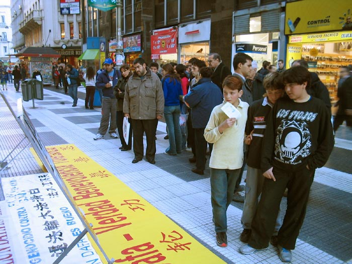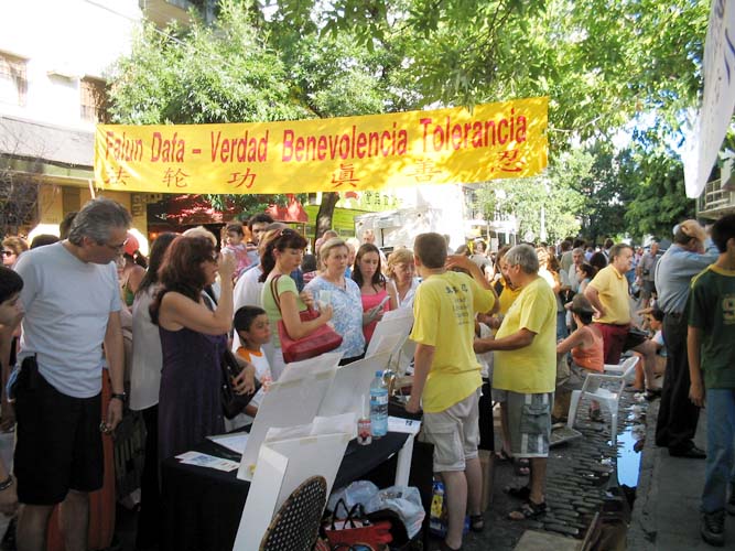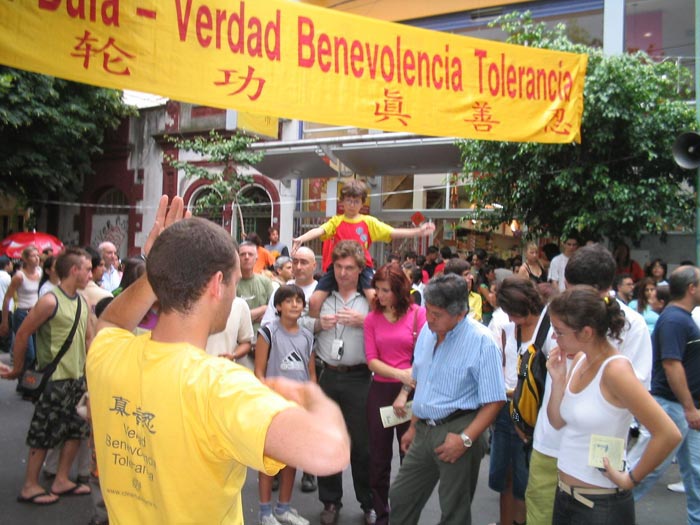 在阿根廷首都的中国街庆祝中国新年所举办的园游会上,法轮大法展位是最受欢迎的。二零零五年二月中国新年,阿根廷法轮功学员第三次参加该活动,揭露中共与江氏集团的迫害,使许多民众关注迫害。