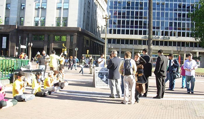 ![]() 二零零四年七月二十日,阿根廷法轮功学员在总统府旁讲真相 |