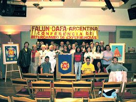 二零零三年五月四日,阿根廷法轮功学员在首都布宜诺斯艾利斯(Buenos Aires)举行了第一次全国法轮大法心得交流会。从Tucuman、 Cordoba、Santiago Estero、Catamarca、Formosa各省等地来的学员代表都是乘坐十几个小时的公车连夜赶来的,还包括智利的学员代表专程赶来参加这次法会。
