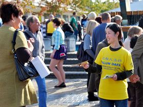 二零零九年十月十七日,英国海滨城市普利茅斯迎来了每年秋季举办的“食品节”,英国大法弟子在“食品节”上举办了弘法讲真相活动。