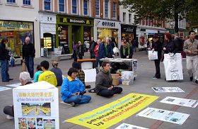 英国大法弟子在曼彻斯特市中心揭露迫害(图)