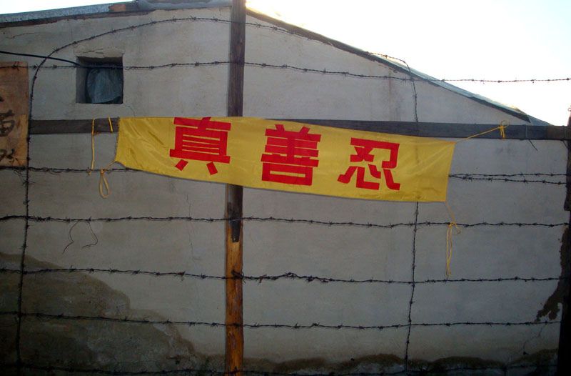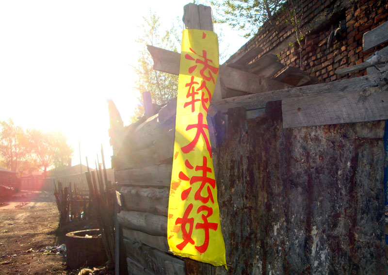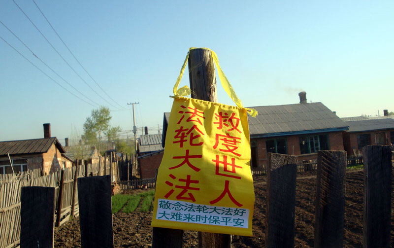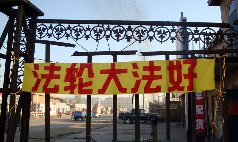 黑龙江某市世界法轮大法日期间挂出的条幅