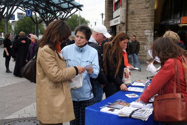 ![]() 德国民众在法轮功信息台前了解迫害真相 |
