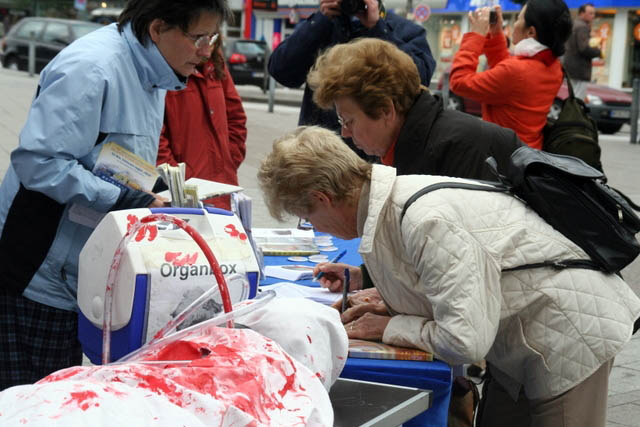 ![]() 德国民众签名抗议中共强行活体摘取法轮功学员器官 |